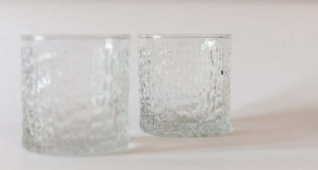 * dwie szklanki z bezbarwnego szkła o ciekawej fakturze