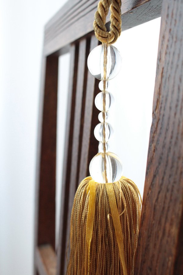 Ozdobny sznur wykończony chwostem z delikatnymi, gęstymi frędzlami. Można powiesić go we wnętrzu jaki bibelot lub zastosować jako element upięcia zasłony czy firany.