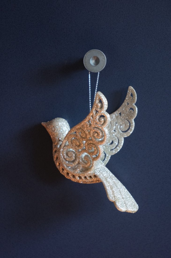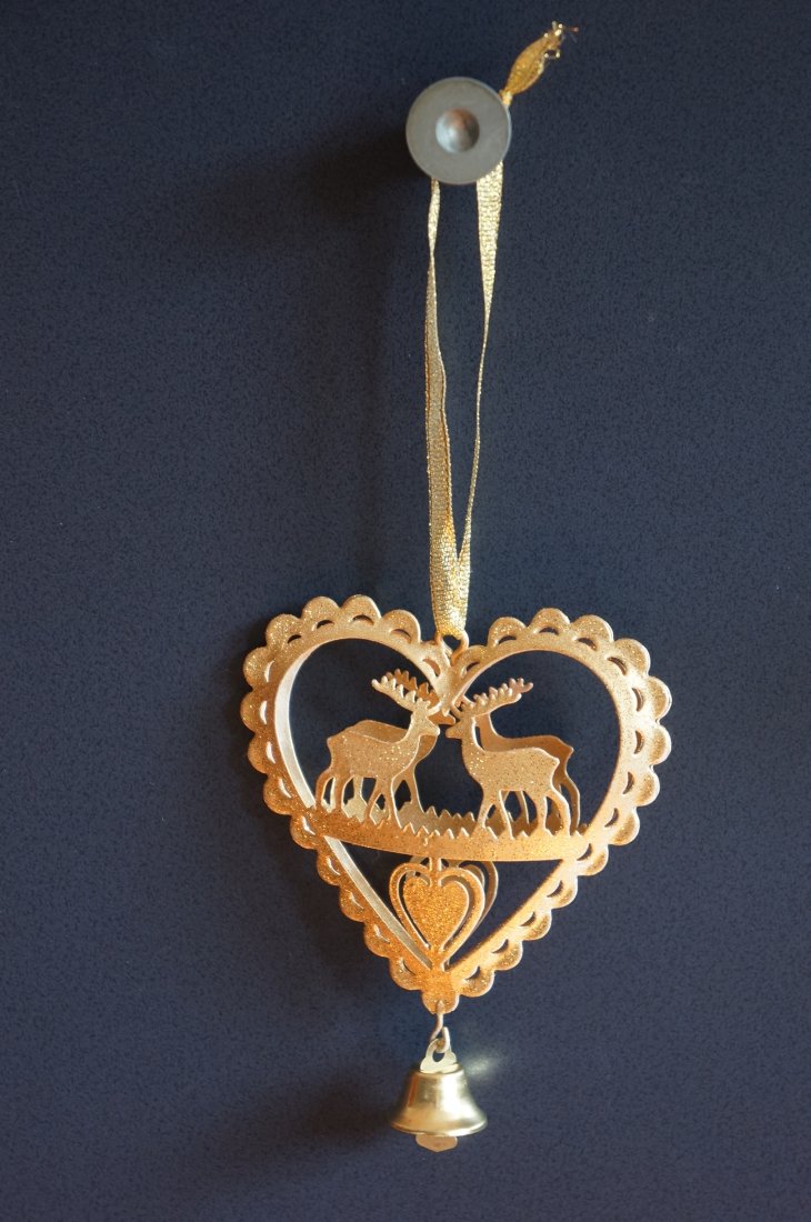 Dwie śliczne ozdoby na choinkę. Złote serce wykonane z metalu, ptak z tworzywa. Stan bardzo dobry