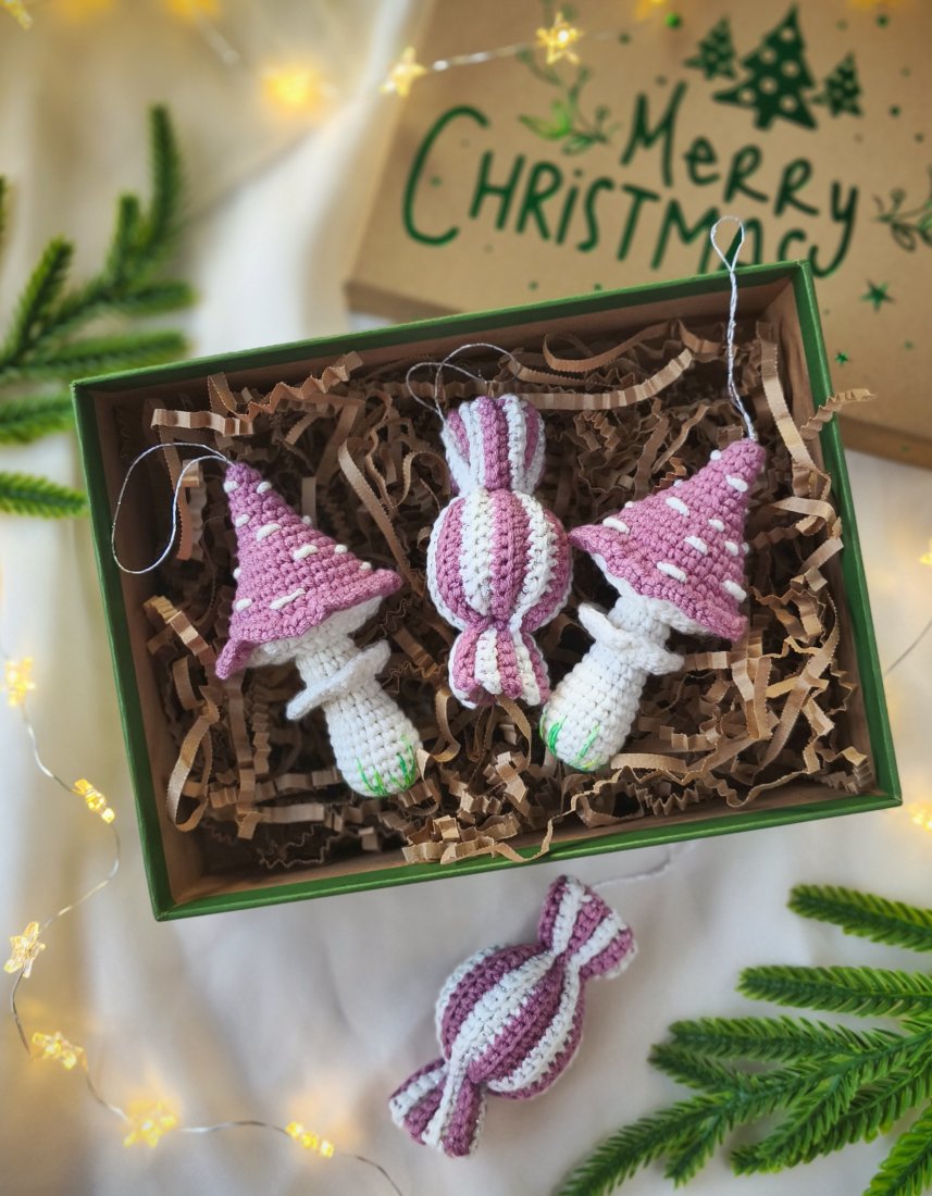 Zestaw świątecznych ozdob na choinkę wykonany na szydełku to doskonały i unikalny prezent na Święta Bożego Narodzenia dla całej rodziny czy przyjaciół.