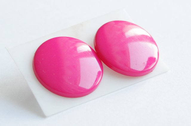 Urocze, fuksjowe kolczyki ożywiające stylizację. Stan: nowe.