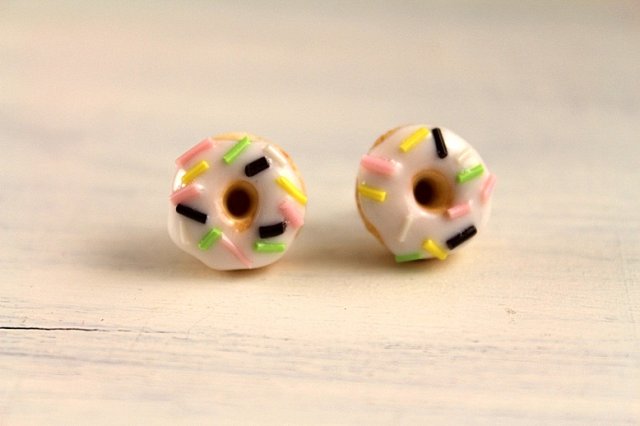 Witaj w moim sklepie. Mam do zaoferowania własnoręcznie wykonane z masy termoutwardzalnej fimo kolczyki sztyfty - słodkie pączki z posypką. Całość zabezpieczona werniksem.