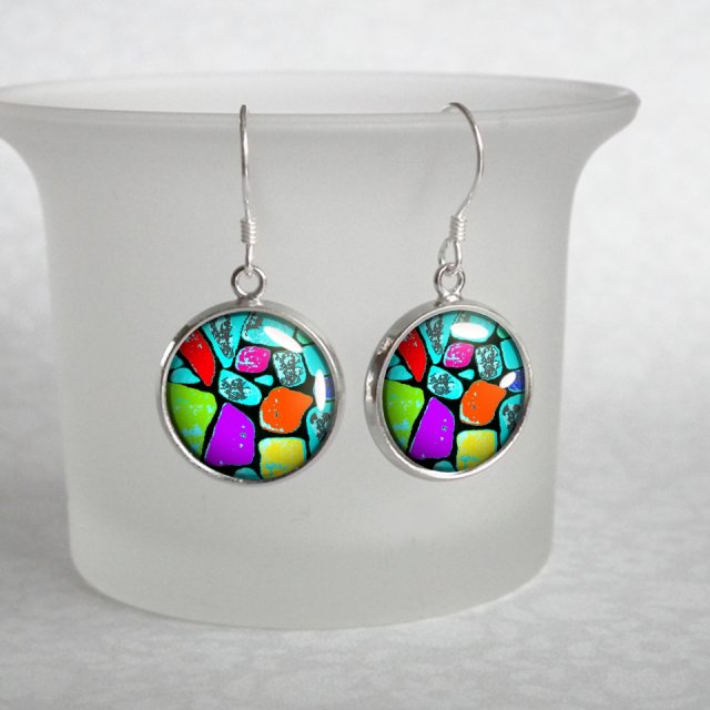 Delikatne, śliczne kolczyki wiszące z oryginalną grafiką,zatopioną pod wypukłym szkiełkiem i oprawioną w hipoalergiczną bazę w kolorze srebra. Grafika jest najwyższej jakości, wyraźna i nasycona. Bigle otwarte ze srebra próby 0,925. Oryginalne kaboszony wykonane ręcznie według mojego projektu i przeze mnie, z dbałością o każdy detal.