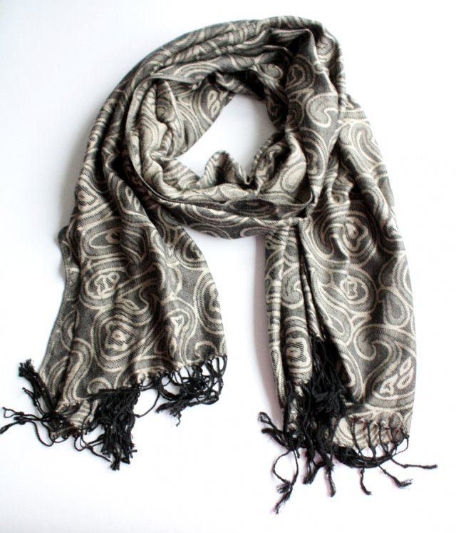 Miękki, mił w dotyku szal w duże wzory typu paisley.