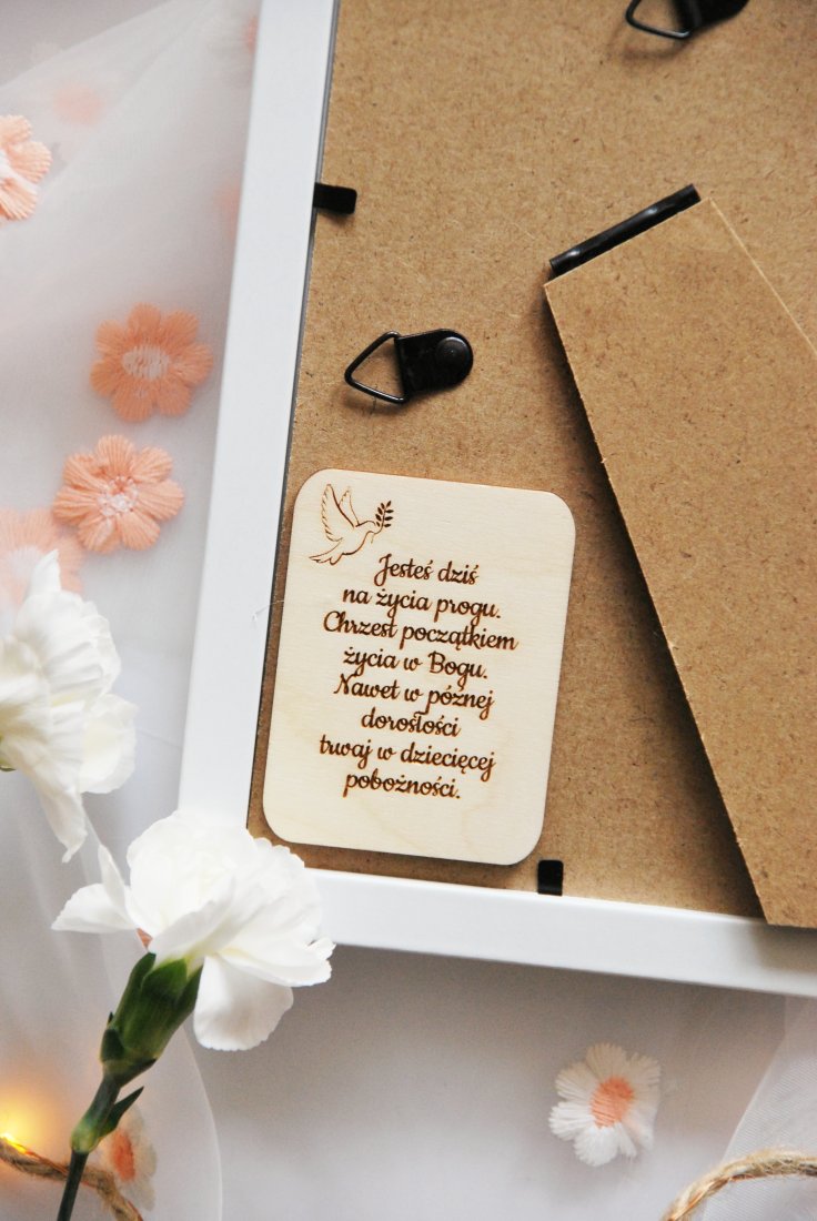 Pamiątka pięknie ozdobi dziecięcy pokój i przez lata będzie wzruszającym wspomnieniem tego wyjątkowego dnia.