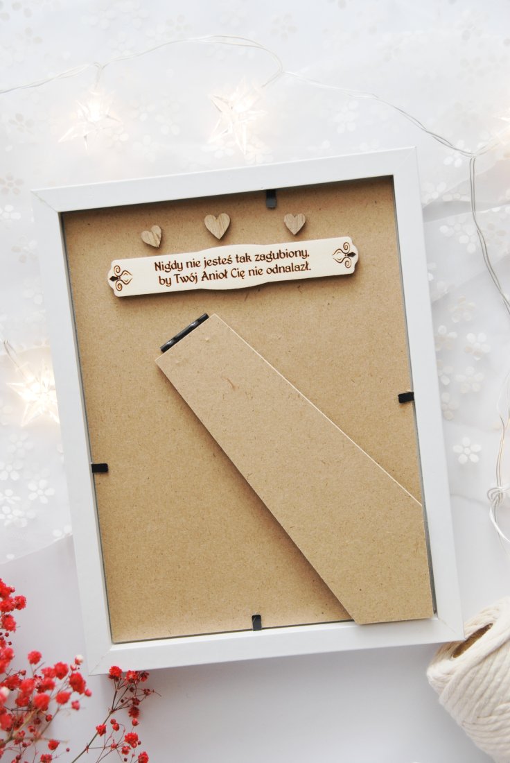 Z tyłu ramki znajduje się ozdobna tabliczka z pięknym hasłem.