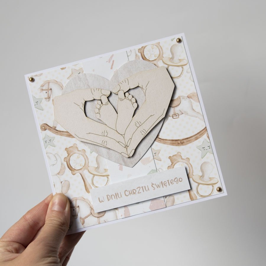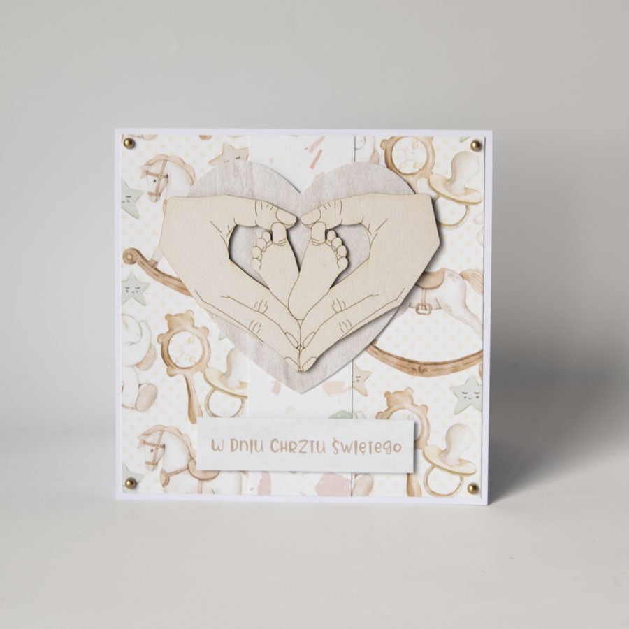 Ręcznie wykonana kartka z okazji Chrztu Świętego dziecka. Pojedynczy, niepowtarzalny egzemplarz.