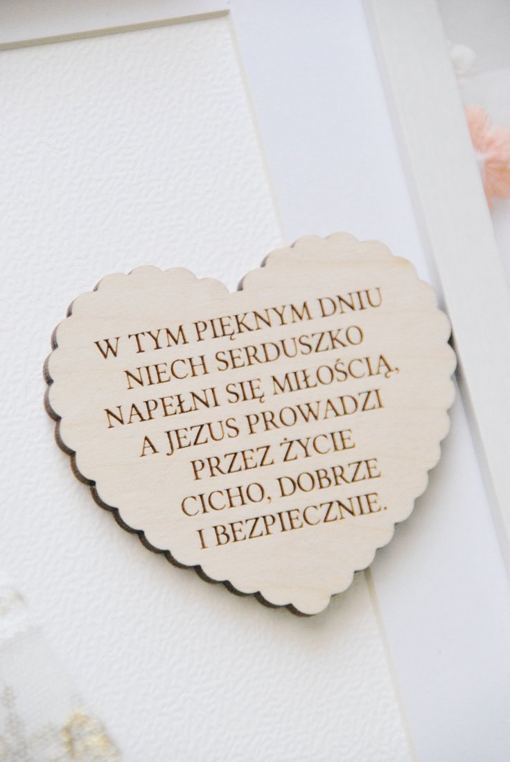 "W tym pięknym dniu niech serduszko napełni się miłością, a Jezus prowadzi przez życie cicho, dobrze i bezpiecznie." - to prezent, który mówi więcej niż tysiąc słów.