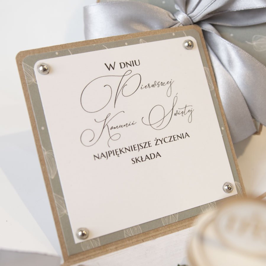 Nietypowa forma pamiątki z okazji Pierwszej Komunii Świętej dziecka, idealnie sprawdzi się jako prezent od matki chrzestnej lub ojca chrzestnego.