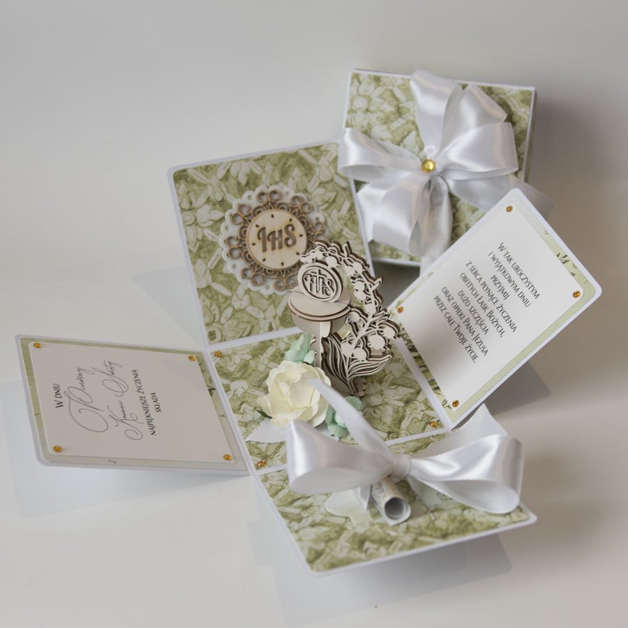 PAMIĄTKA PIERWSZEJ KOMUNII ŚWIĘTEJ EXPLODING BOX KARTKA 3D