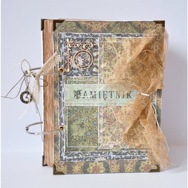 Pamiętnik formatu A5 i 100 kartek w środku. Spięty jest otwieranymi, metalowymi kółkami, dzięki czemu można dołożyć/wymienić kartki. Każda rzecz, którą robię to 100% autorski projekt, dzięki czemu rzeczy te są oryginalne i niepowtarzalne.