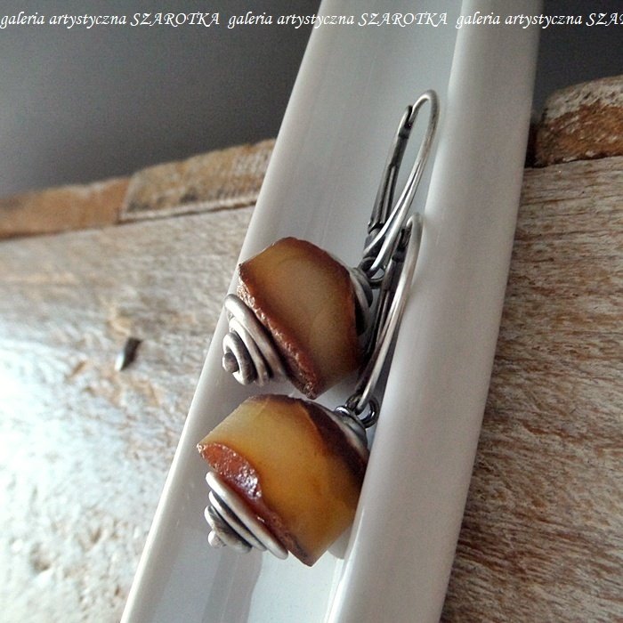 Tagi: #bursztyn bałtycki, #bursztynowe kolczyki, #srebro oksydowane 925, #surowe kolczyki