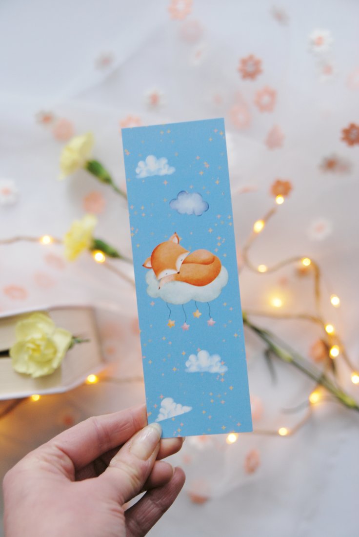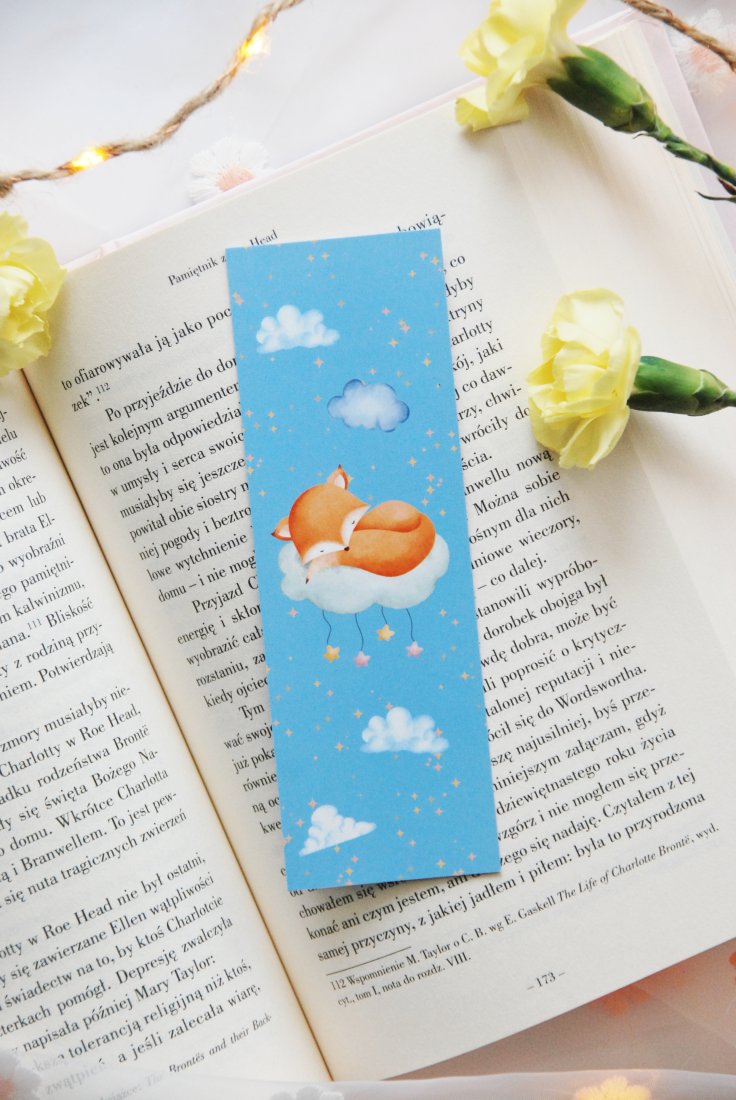 Papierowa zakładka do książki z uroczym motywem - śpiącym liskiem.