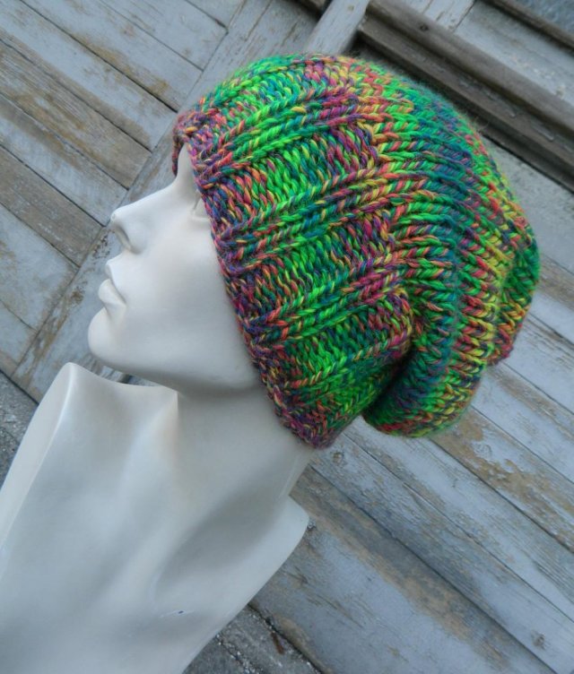 Wełniana krasnalowa czapa w super optymistycznym papuzim melanżu. Kolory są mocne, nasycone, wyraziste, ostre. Wydziergałam ją z fantastycznej gatunkowo hiszpańskiej włóczki (50%wełny, 50% akrylu). Czapa jest gruba, ciepła, mięsista, włóczka bardzo przyjemna w dotyku. Rozmiarowo na niedużą głowę, w obwodzie ok 54-57cm, głębokość 29cm.