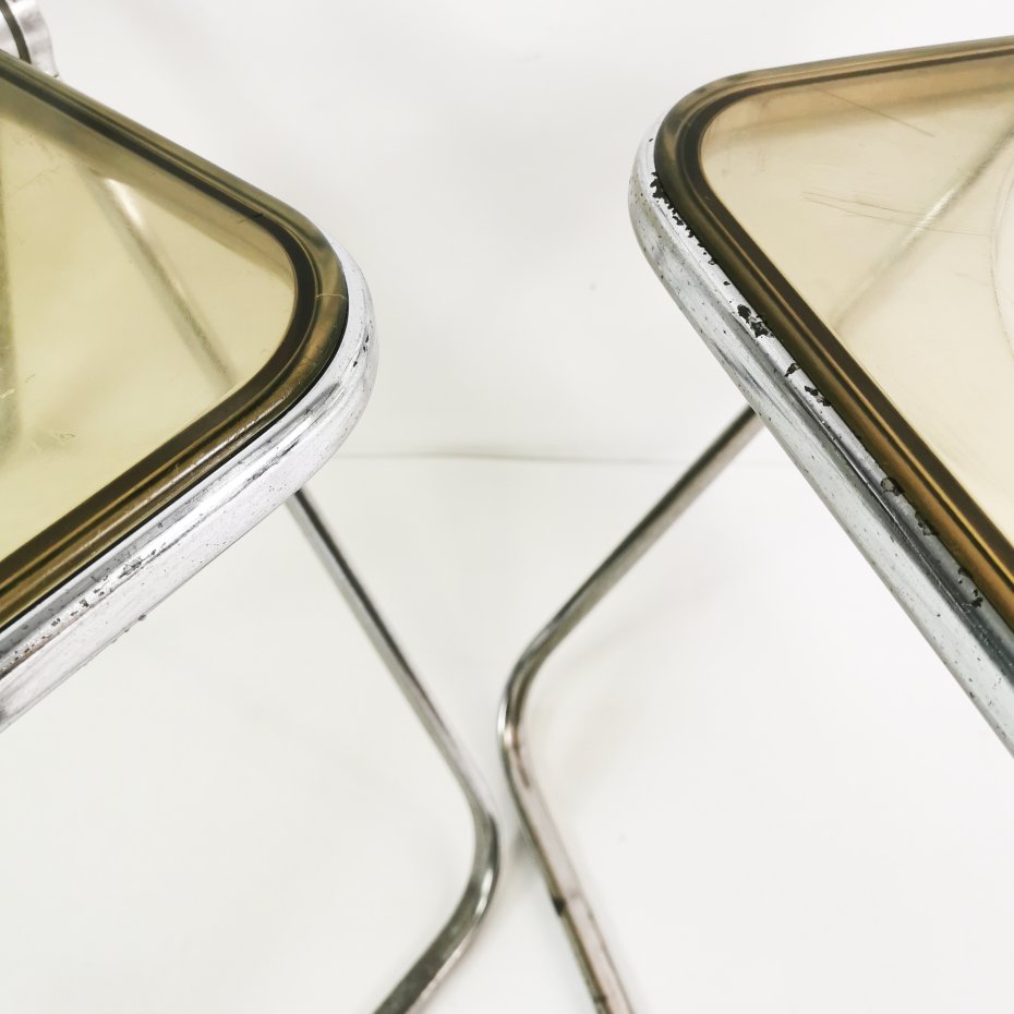 Wykonane z metalu oraz tworzywa, krzesła posiadają sygnatury.