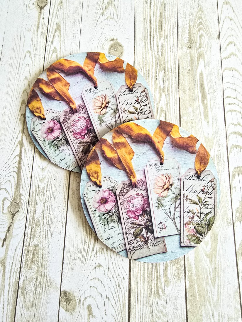 Wykonane metodą decoupage. Pokryte ręcznie wielokrotnie bezwonnym lakierem akrylowym