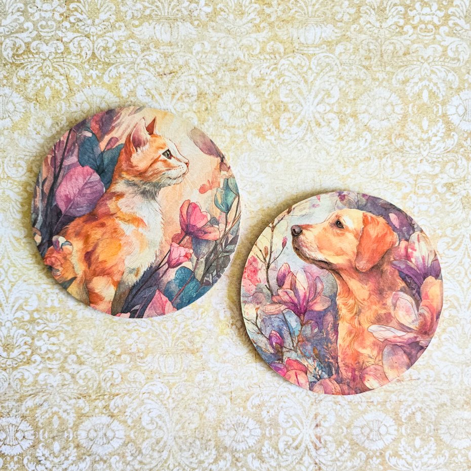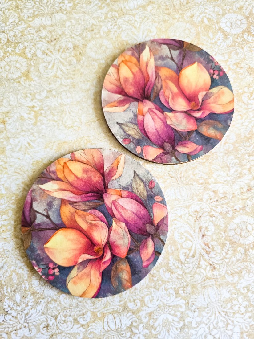 Oto zestaw podkładek z myślą o prezencie dla osoby kochającej magnolie i zwierzęta