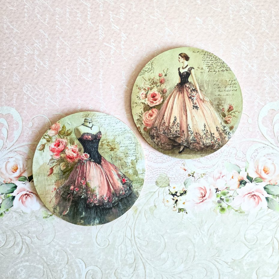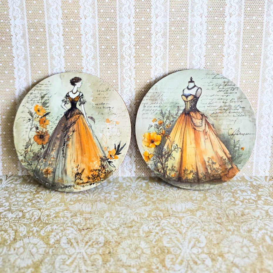 Oto zestaw podkładek z myślą o prezencie dla osoby kochającej stare suknie i ogólnie styl retro, vintage