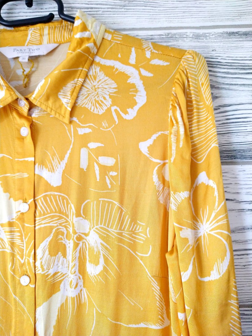 Piękna koszulowa sukienka w słonecznym ciepłym kolorze, skandynawska renomowana marka.