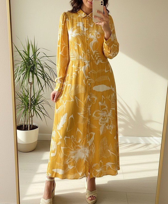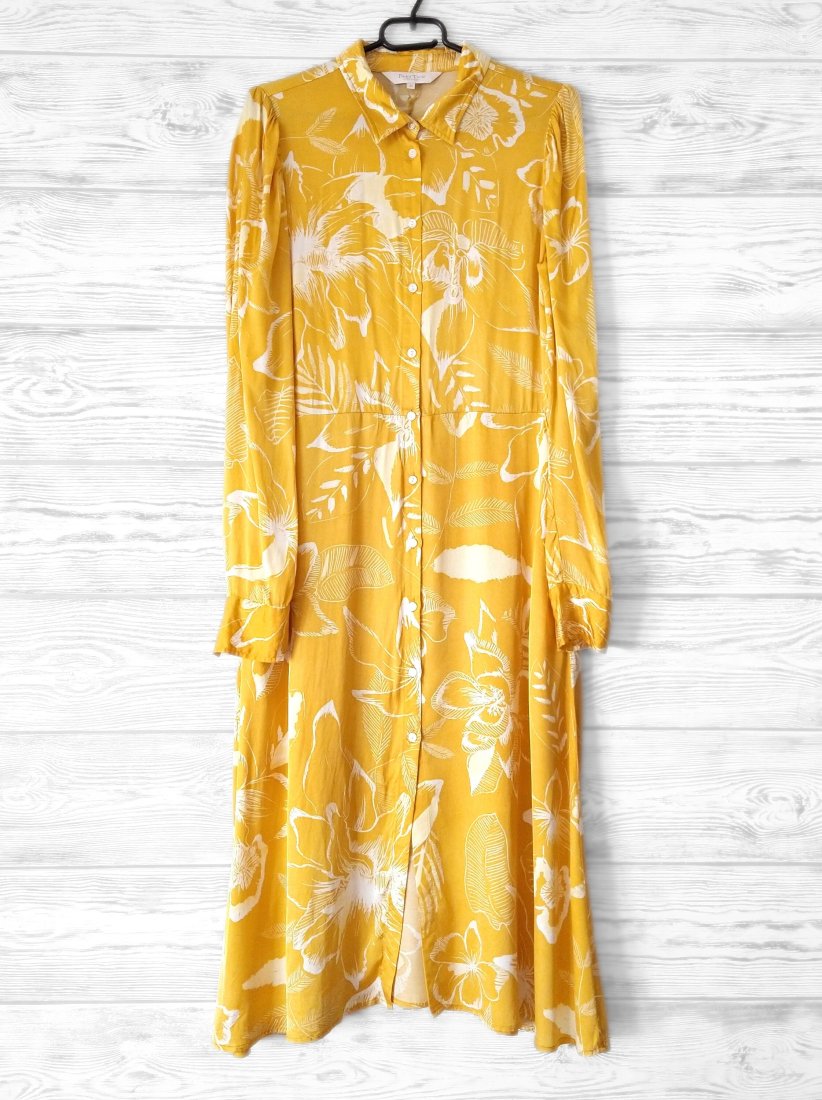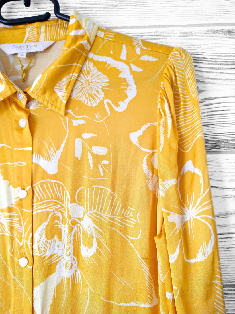 Piękna koszulowa sukienka w słonecznym ciepłym kolorze, skandynawska renomowana marka.