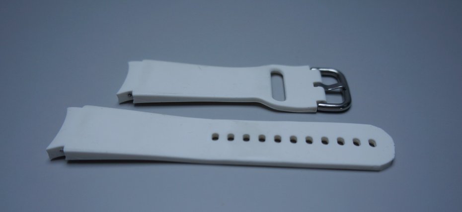 Silikonowy pasek do zegarka w kolorze białym. Szerokość paska 2 cm. Stan nowy, nieużywany.