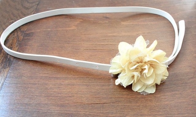 Wąski pasek ozdobiony kwiatkiem w herbacianym odcieniu. Pasek efektownie podkreśli talię w luźnej sukience, spódnicy lub tunice.