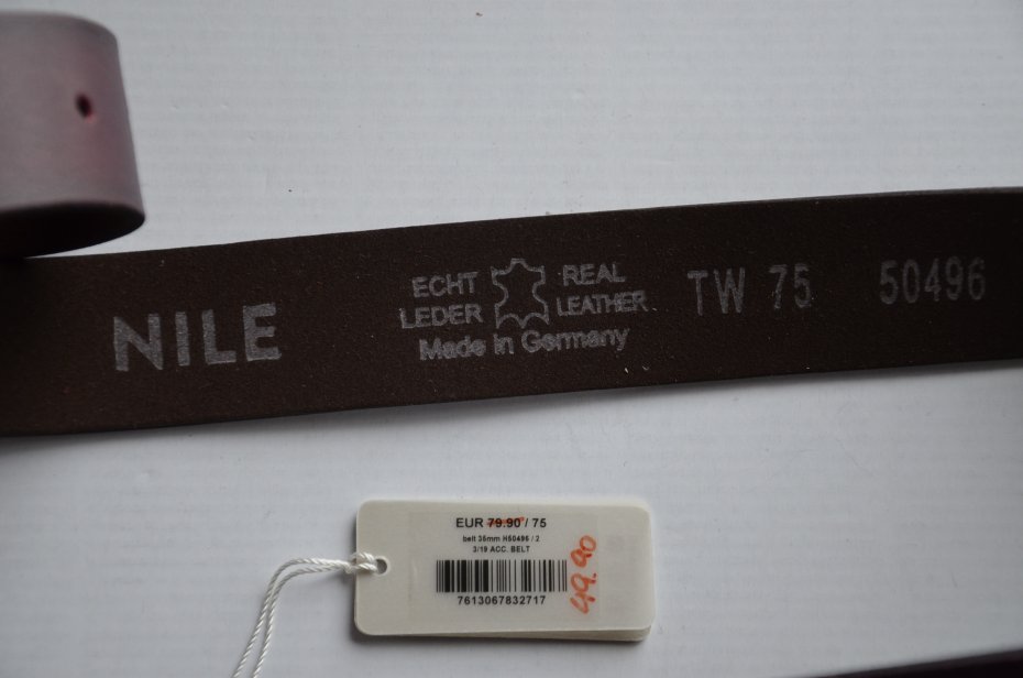 nowy pasek NILE rozmiar 75; na metce cena wyprzedażowa 49,90€ ze 79,90 €;