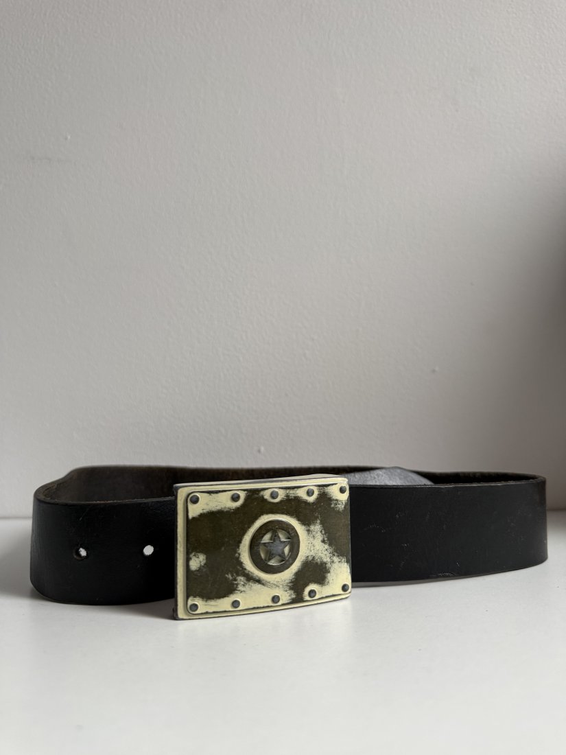 Pasek skóra naturalna SADDLER. Od bolca do pierwszej dziurki 66cm. Stan bdb. Ozdobna metalowa klamra.