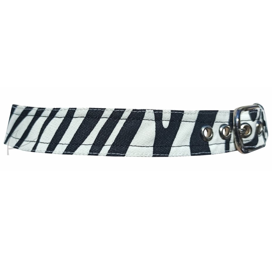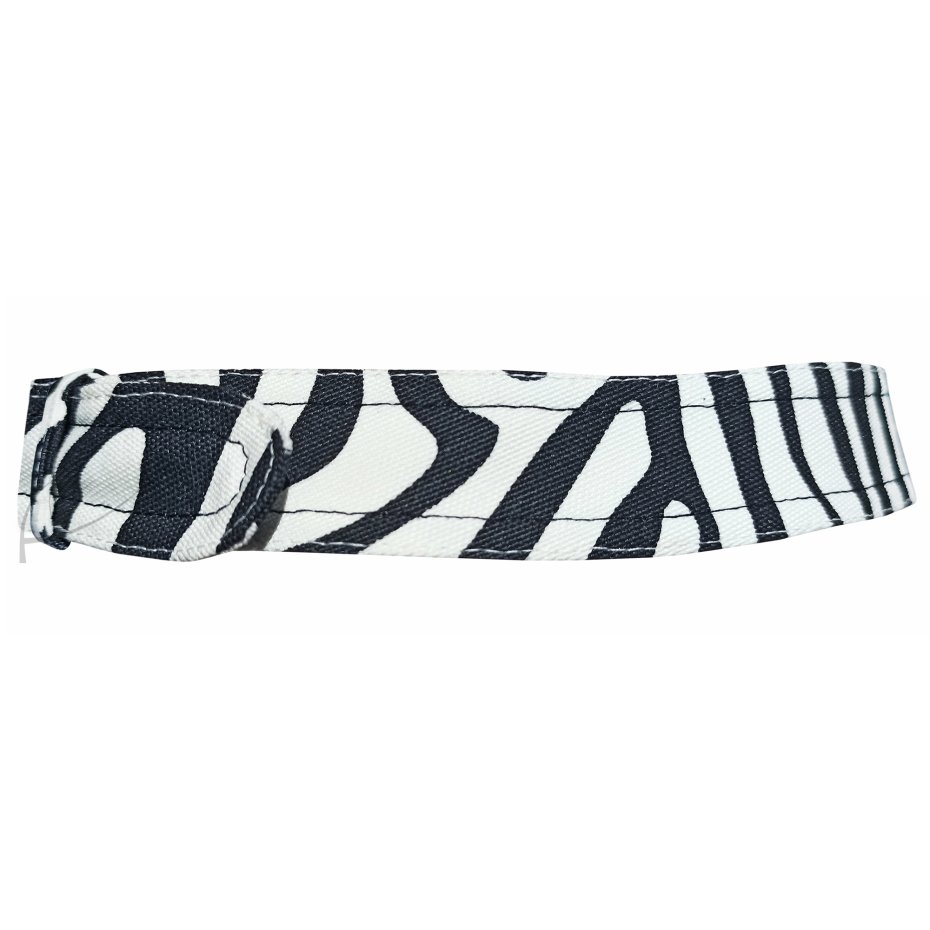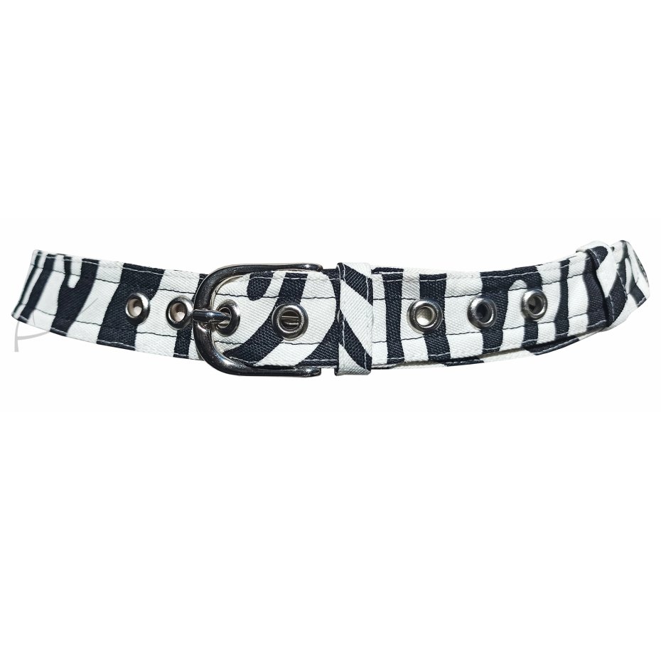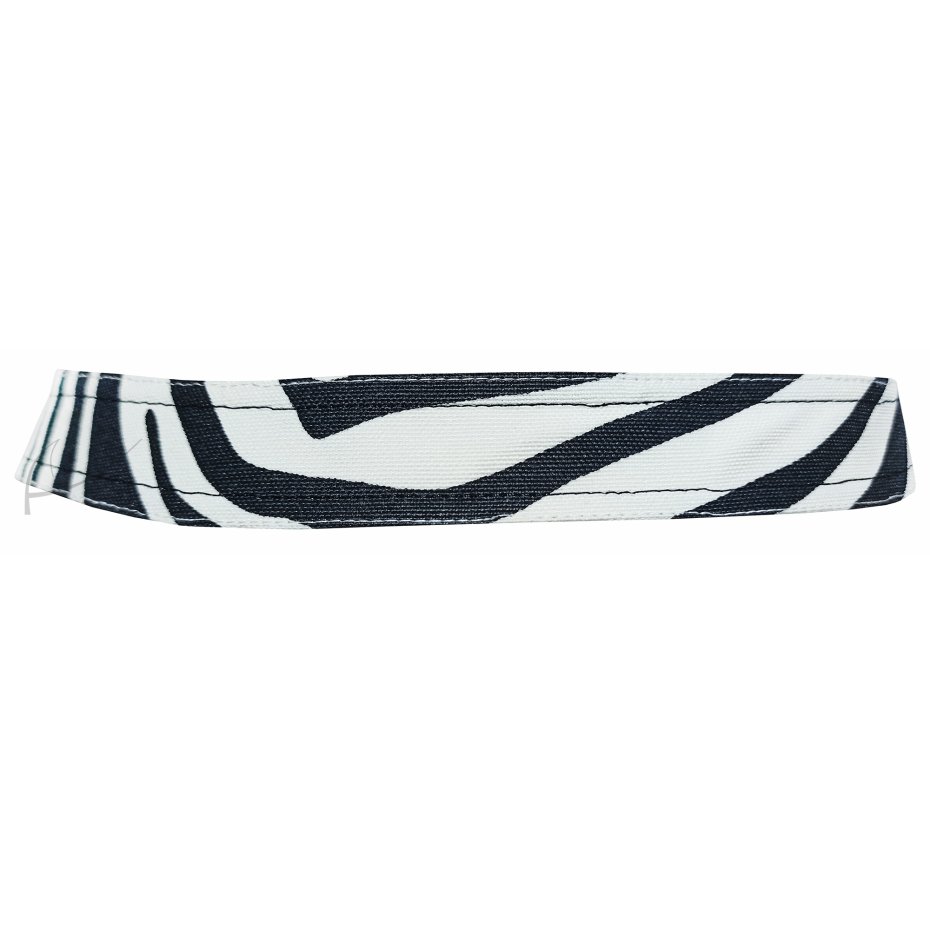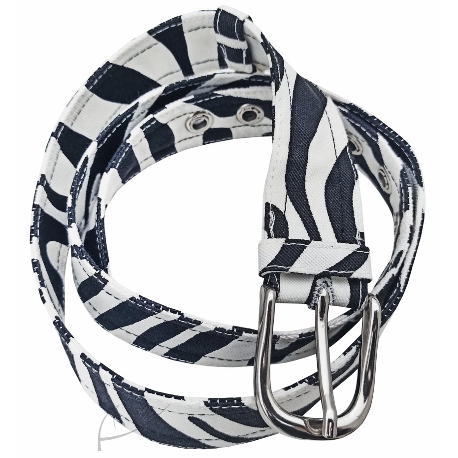 Czarno biały pasek zebra, z tkaniny, na biodra, z metalową klamrą.