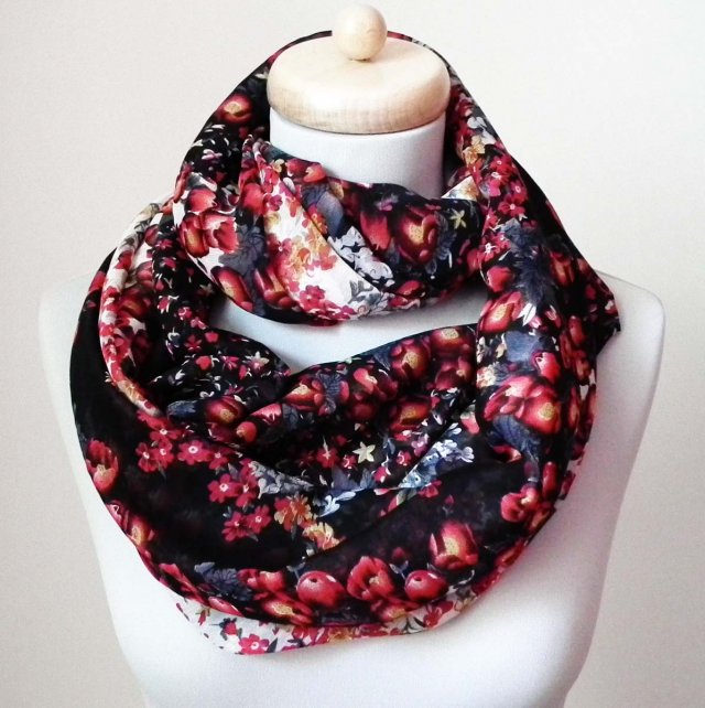 4.  > PASSIONATA szyfonowy komin w kwiaty czerwono-czarny (nr 4407418)