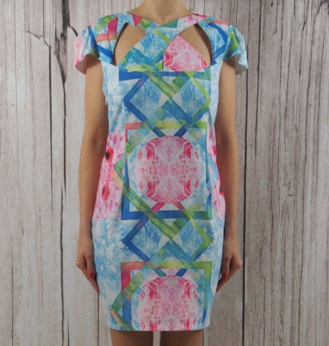 Prześliczna sukienka marki Boohoo. O unikatowym kroju, z wycięciami. Materiał: to chyba wiskoza.