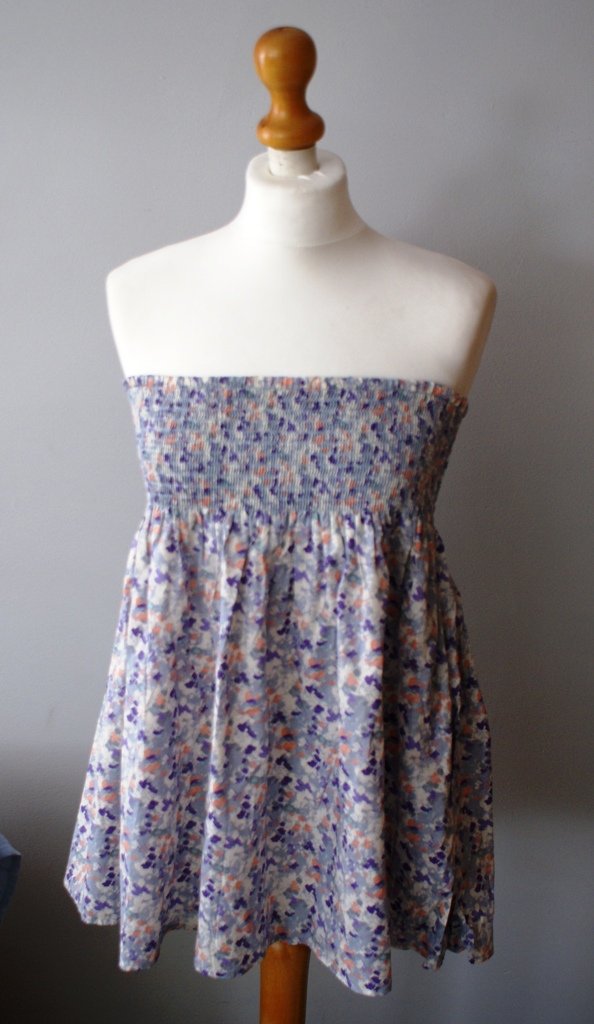 Pastelowa bluzka-tunika bez ramiączek. W błękitnym kolorze.