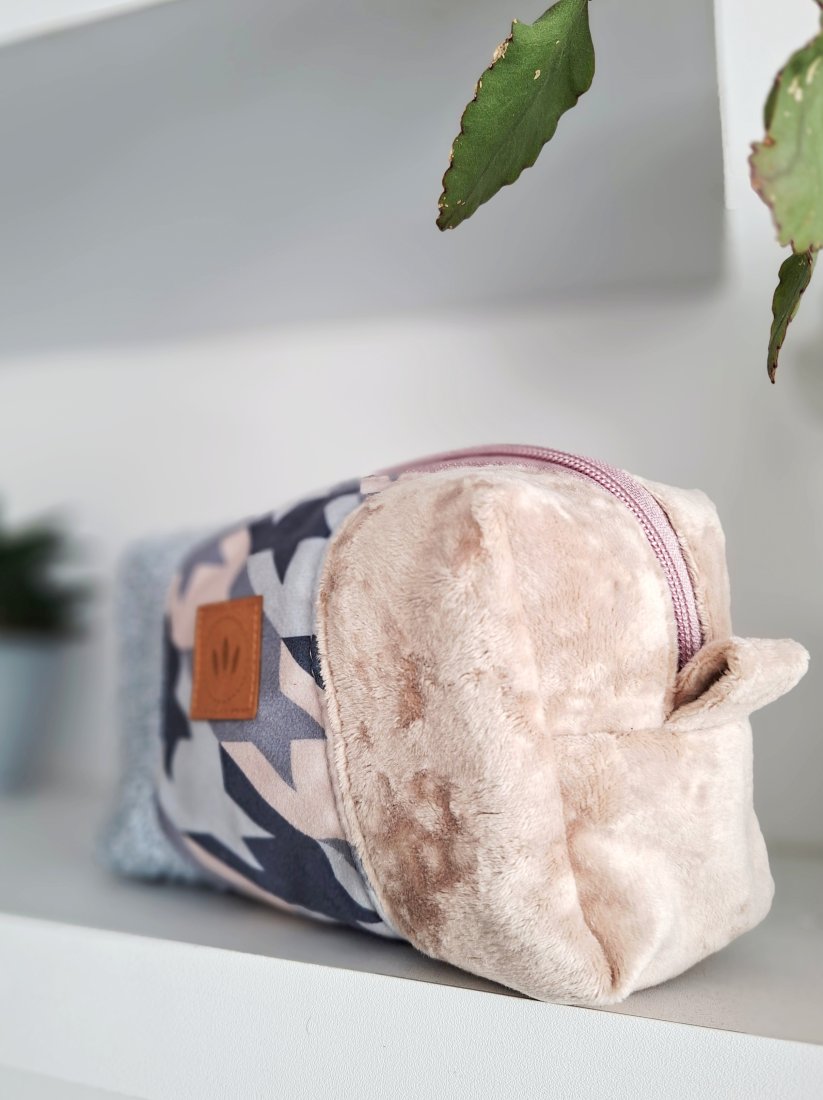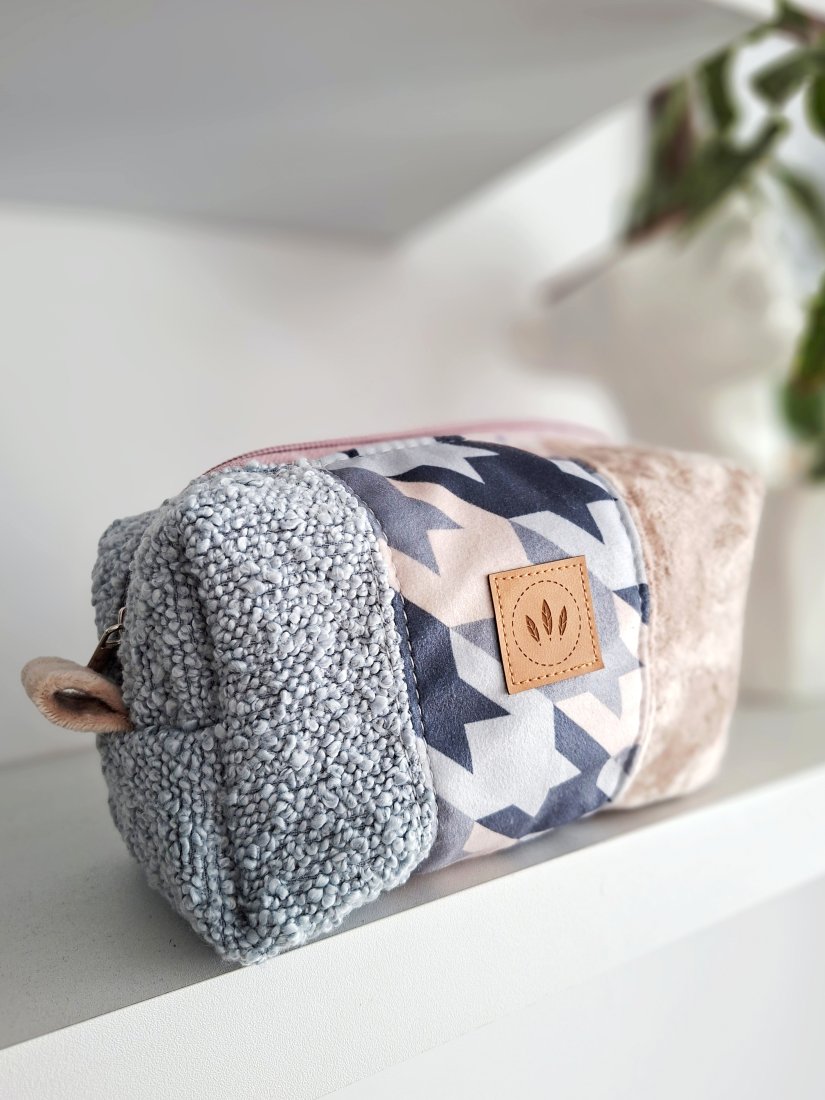 ❤ Materiał wierzchni: tkanina boucle i welur tapicrerski, 100% PES, kosmetyczkę można prać w pralce 30st. ( delikatny program), niewielkie zabrudzenia można usunąć za pomocą piany z wody i mydła.