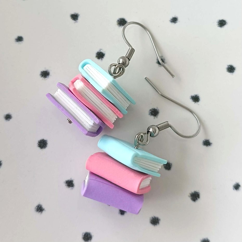 Urocze kolczyki w kształcie stosu książek to idealny dodatek dla wszystkich miłośników czytania. Subtelne pastelowe kolory i dopracowane detale sprawiają, że są jednocześnie delikatne i wyjątkowe.