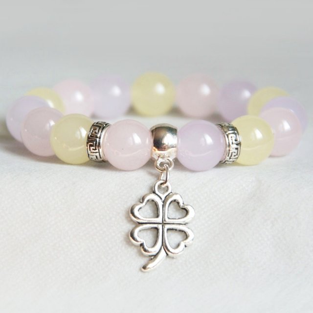 POMYSŁ NA PREZENT ;-) niezwykle okazała i efektowna bransoletka na podwójnej, solidnej lince elastycznej, wykonana ze sporych, kul jadeitu (12mm) w pastelowych odcieniach, oraz metalowych elementów (koniczynka i ozdobne, metalowe pierścienie). .... JADEIT - Pomocny jest w schorzeniach nerek i pęcherza .Pomaga przy bólach kręgosłupa. Odpręża, daje spokojny sen, pomocny jest w medytacji . Wzmacnia koncentrację.... PASUJE NA NADGARSTEK 15-16CM.... ZOBACZ CAŁĄ KOLEKCJĘ!