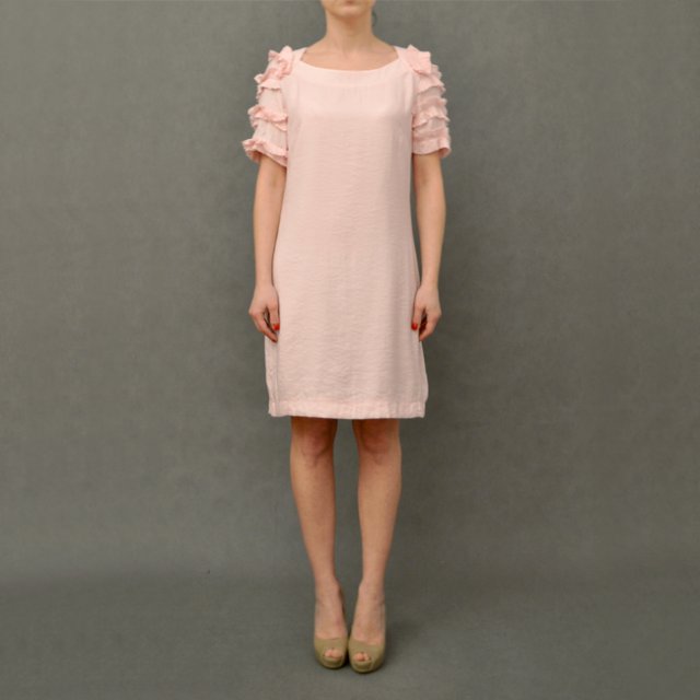 Wyjątkowa sukienka w kolorze jasnego różu. Krój prosty, którego ozdobą są bardzo ciekawe rękawy. Z tyłu zip.