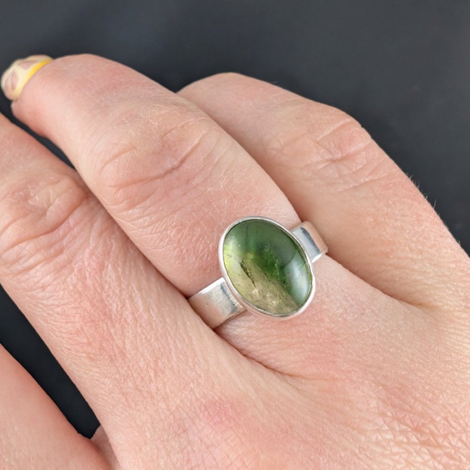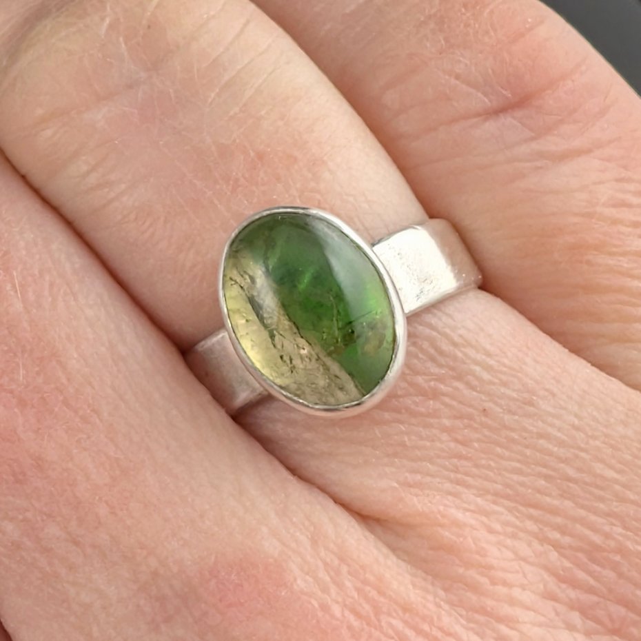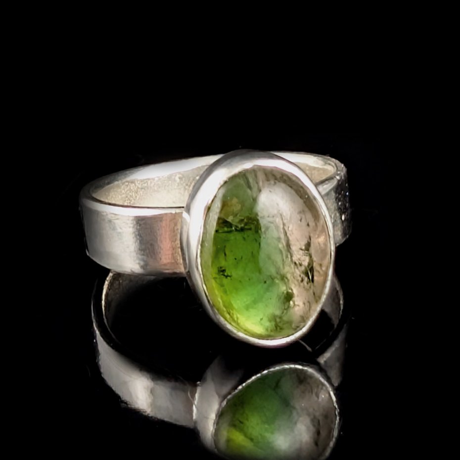 Delikatny, uroczy pierścionek wykonany ze srebra próby 925 oraz naturalnego turmalinu arbuzowego. Oprawa o 12 x 9 mm. Waga 4,5 g. Dziewczęcy, subtelny, klasyczny. Rozmiar jubilerski 12, mogę powiększyć na max 13. Pierścionek zostanie zapakowany w ozdobne pudełeczko.