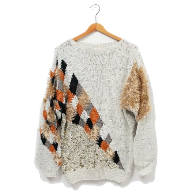 Zwariowany sweter. Wbrew pozorom jest BARDZO współczesny i spokojnie mógłby się znaleźć na wybiegu jakiegoś szalonego projektanta.
