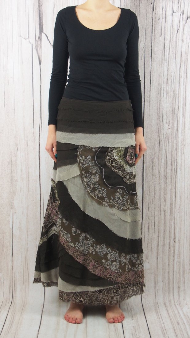 Patchworkowa spódnica na podszewce. Moim zdaniem poliester.