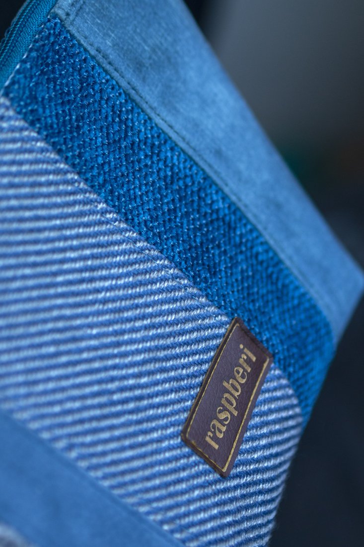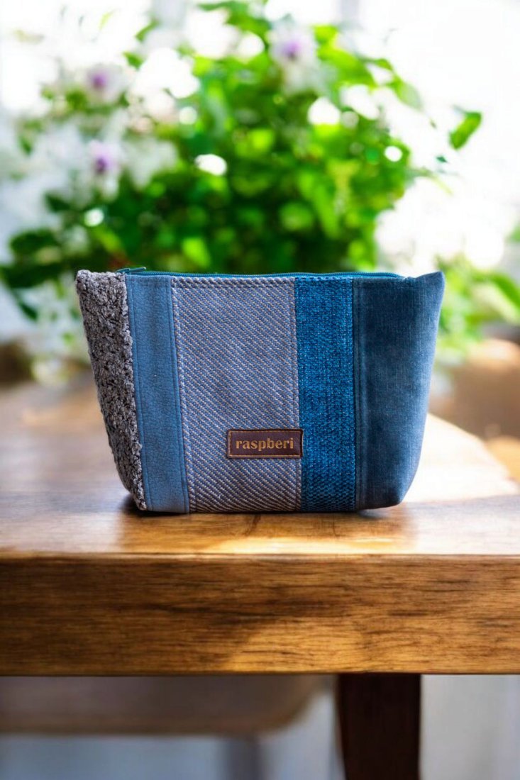 Duża kosmetyczka w kolorze niebieskim. Bardzo przyjemna w dotyku. Wykonana w duchu no waste.