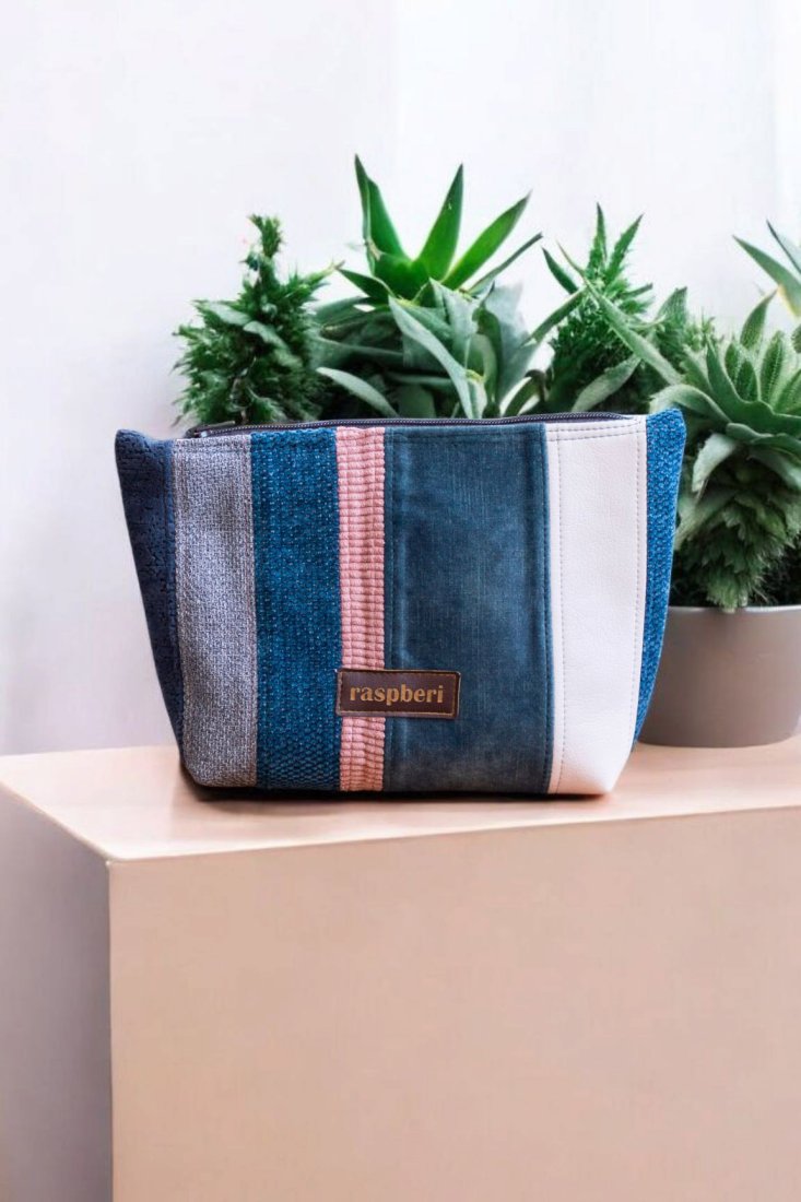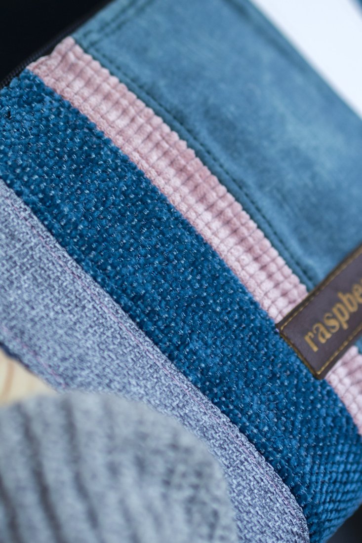 Duża kosmetyczka wykonana w duchu no waste z resztek tkanin.