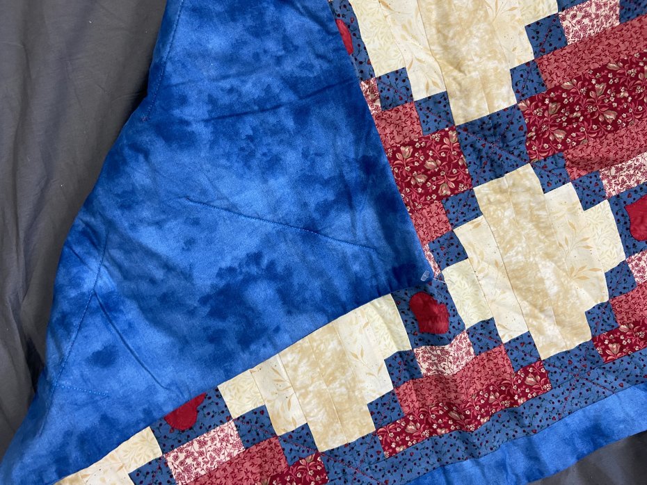 Patchworkowy obrusik - wymagał ogromnych pokładów pracy. Wspaniały jest! Na etsy takie cuda chodzą za ponad 100euro... Bawełniany.