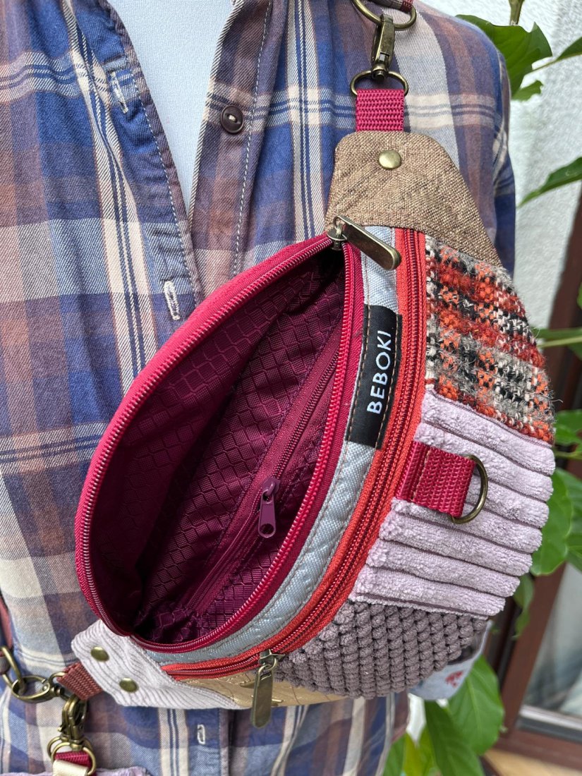 Kolorowa, energetyczna i absolutnie wyjątkowa – ta nerka BEBOKI w wersji patchworkowej, w rozmiarze M, to połączenie funkcjonalności i artystycznego designu. Uszyta ręcznie z różnorodnych materiałów – od miękkiego struksu i tkaniny tapicerskiej po wodoodporną pikowaną tkaninę – zachwyca trwałością i charakterem.