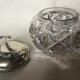 Absolutnie niesamowita i niespotykana , patentowa, srebrzona cukiernica na kostki cukru . Nie trzeba osobnych szczypczyków , uchwyty sprlniają podwójną rolę. Bardzo ciekawe i praktyczne rozwiązanie . Podstawa gruboszklana , pękatą, fakturowa . Przykrywka srebrzony metal z sygnowanie patentowym : EPNS PATENT No 14048/15 . Cudo jedyne ;) Pękatość 11 góra podstawy 7 dół 7 wysokość podstawy 7,5 wysokość z przykrywką 9,5 średnica przykrywki 7,5 cm Stan zachowania bardzo dobry . Platerowana przykrywka do dopolerowania . Uwaga!!! Nie czyszczę sreber i platerów specjalnie do sprzedaży .