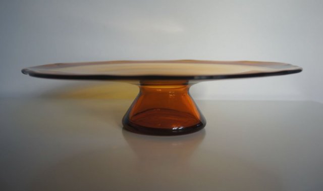 Szklana patera na nóżce. Szkło w kolorze bursztynu. Szkło bez skazy, stan bardzo dobry. Przedmiot idealny na prezent.