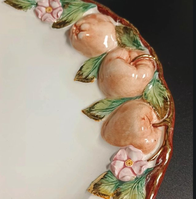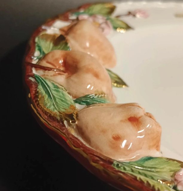 Śliczna patera, półmisek do serwowania. Bogato zdobiona wypukłymi elementami oraz złoceniami.
