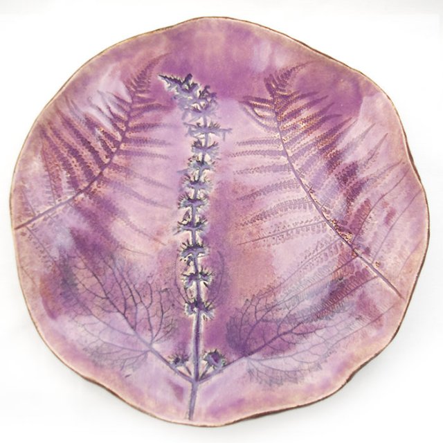 Jest to ręcznie wykonana mała patera ceramiczna, z motywem roślinnym.