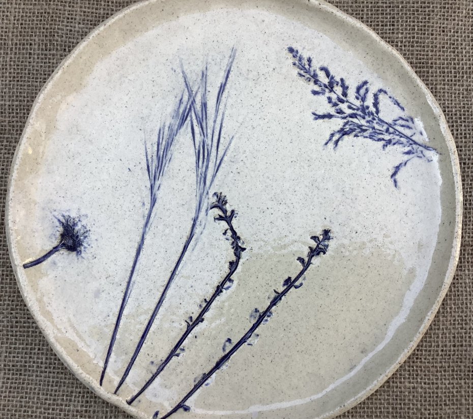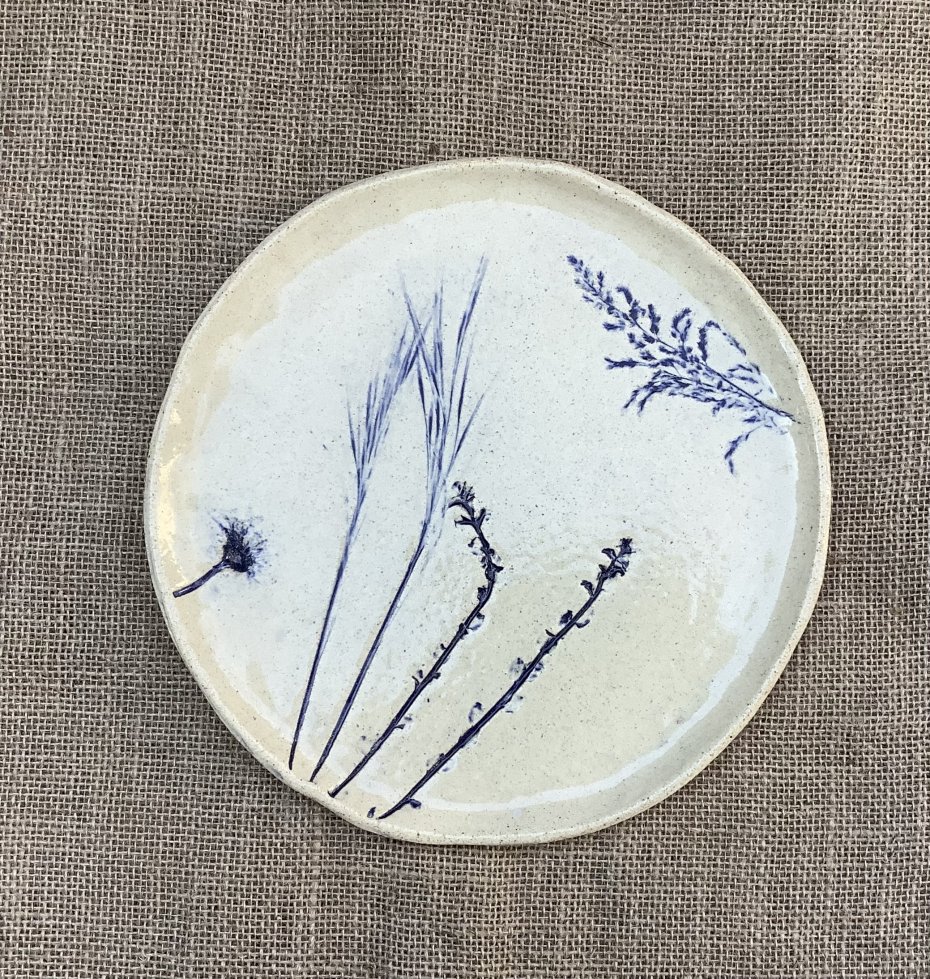 Zapraszam do zakupu talerza / patery w jasnym kolorze z motywem roślinnym w kolorze kobaltowym.