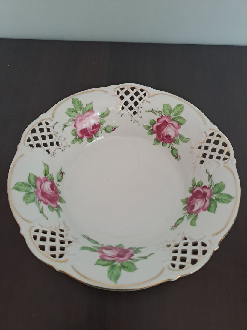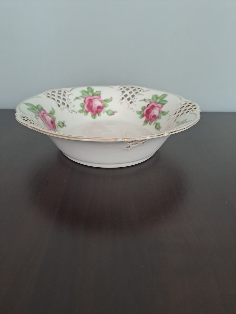 Piękna patera Schumann Dresdenn z różami i z ażurem. Idealna na owoce oraz na słodycze. Stanbardzo dobry, widoczne ślady użytkowania. Polecam.