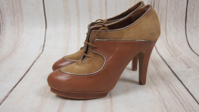 Ekskluzywne półbuty od PATRIZI'i DINI. Ze skórki nieoprawionej i licowanej, w środku także skórzane. Mięciutkie, wygodne. Na wysokim obcasie. Orientacyjna cena sklepowa 100euro.